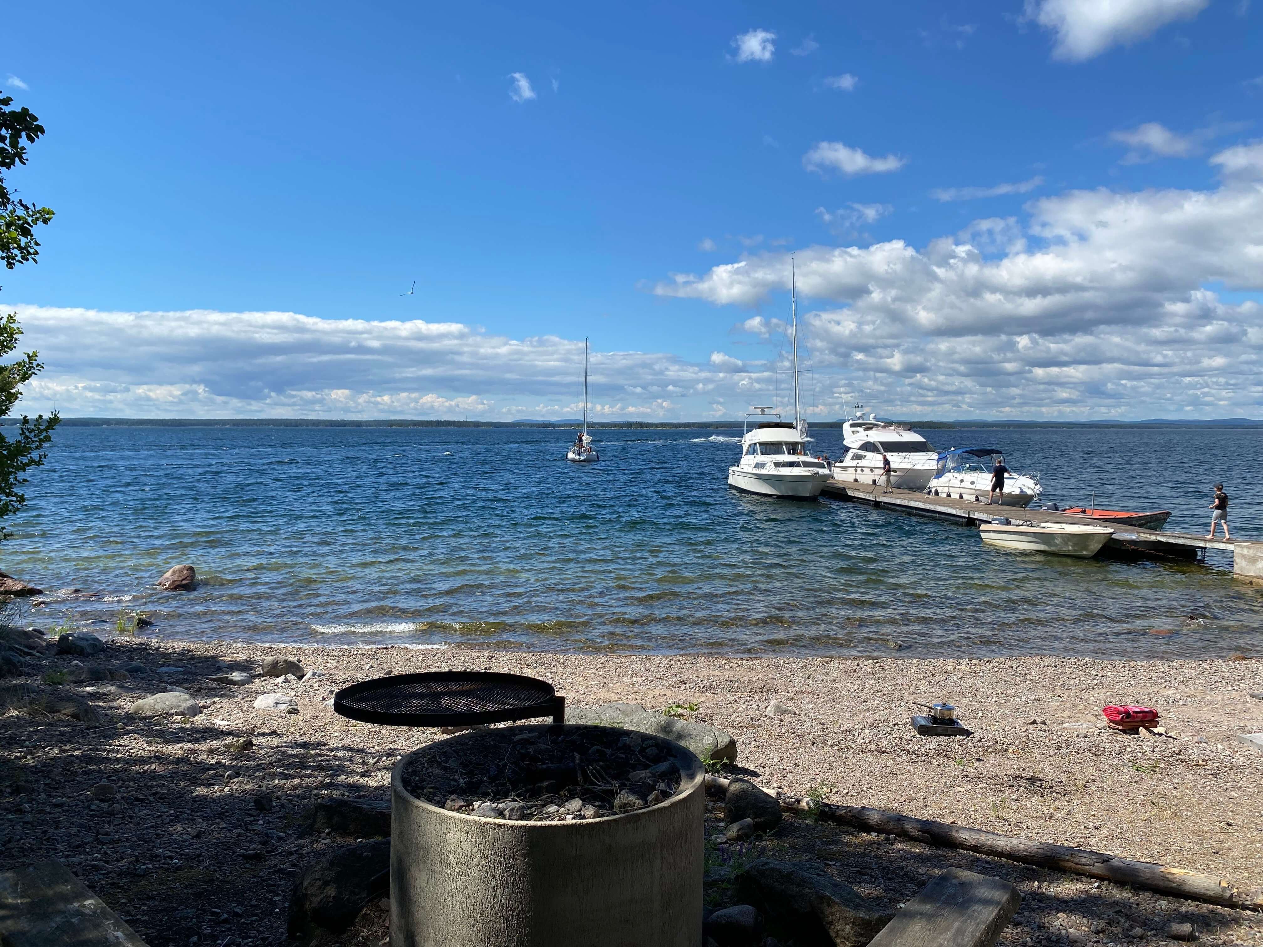 - Området erbjuder en strand och grillplats.